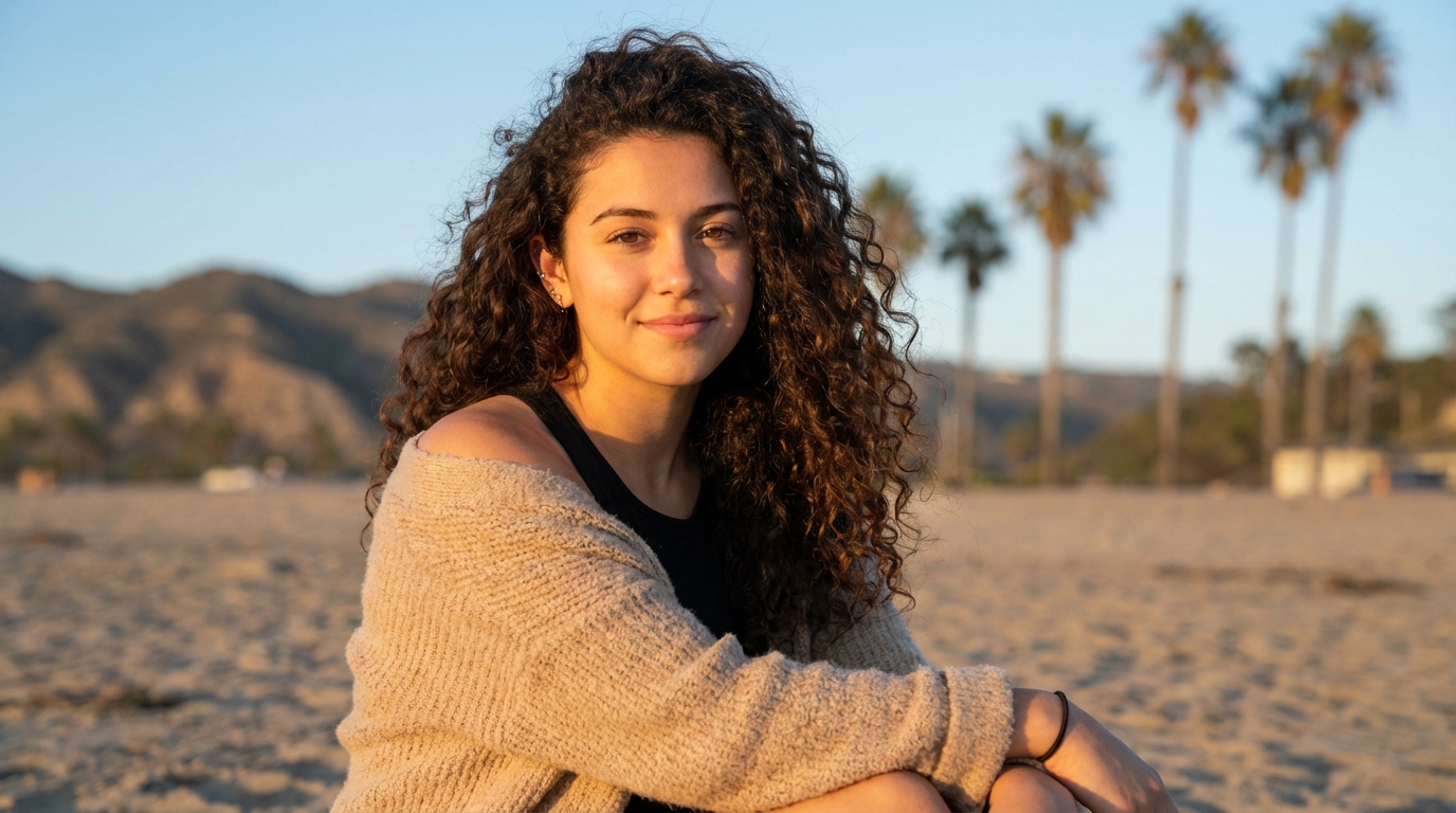 Classic features, effortless look. Adapts her energy to any setting naturally.